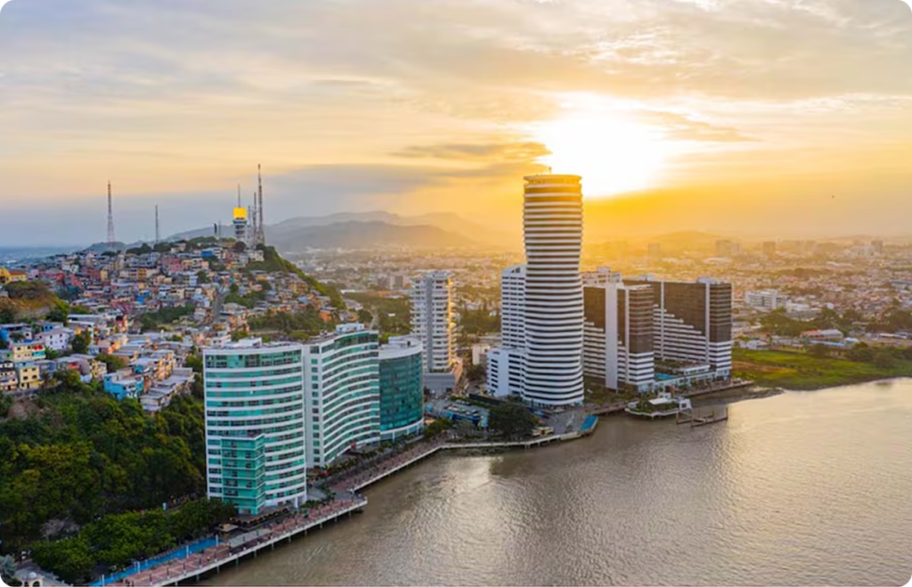Sus diversos paisajes abarcan la selva del Amazonas, las zonas altas andinas y las islas Galápagos de abundante fauna. En las laderas de los Andes, a una elevación de 2,850 m, Quito, su capital, es famosa por su centro colonial español que se ha conservado intacto por mucho tiempo, con palacios decorados del siglo XVI.